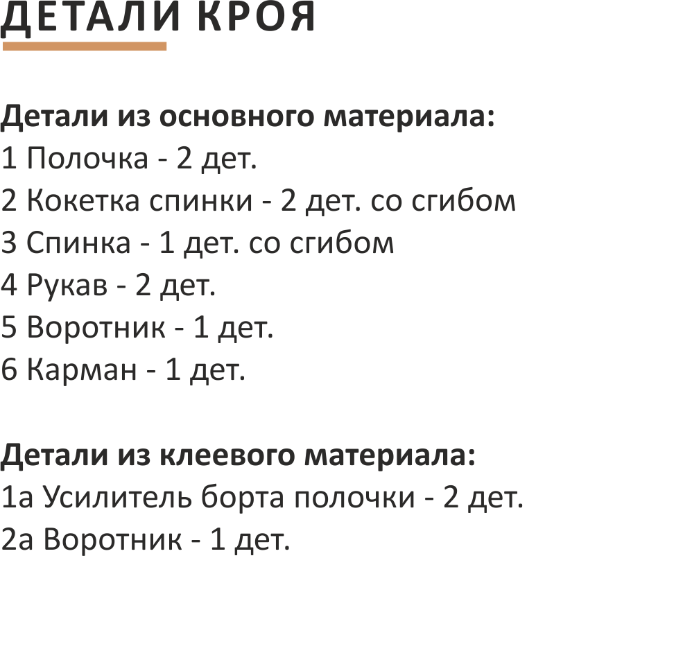 РАСКРОЙ и ПОШИВ: раскроите детали из основного материала. Кокетка спинки обрабатывается по типу мужской сорочки, поэтому кроится 2 дет. Контуры деталей уже содержат припуски на швы и обработку. Величины припусков смотрите на деталях выкройки.